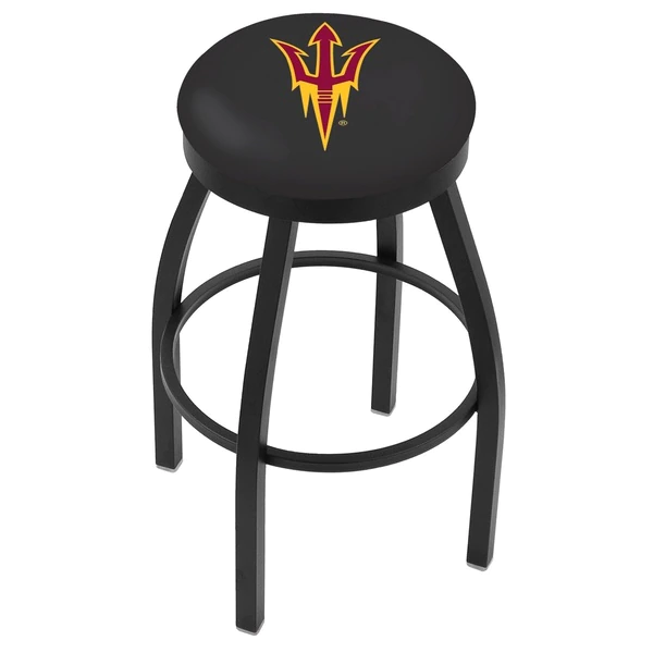 Made for the ultimate sports fan, you will be proud to show where your loyalty lies with this impressive Officially Licensed stool from the Holland Bar Stool Co. This contemporary L8B2B stool has a single-ring black wrinkle base with a 2 1/2" thick cushion sitting on top of a 2" black wrinkle ring that conceals the swivel for an exceptionally clean look. A state of the art print process is used in applying specially formulated UV vinyl ink in numerous stages to produce a sharp, crisp, clear image to ensure a perfect reproduction of the logo. You won't find a higher quality logo stool on the market. The frame is made from commercial quality 16 gauge, 1 1/4 inch tube steel with solid mig welded joints to guarantee strength and durability. The powder coated finish resists chips and scratches and ensures a long-lasting, rich appearance. The cushion seats are of the highest quality as well, utilizing a breathable, commercial grade vinyl. At the heart of the cushion is highly-dense foam that provides maximum support and will not breakdown in a couple years. If you're going to finish your bar, game room, or man cave do it right- with a logo stool made by the Holland Bar Stool Co.