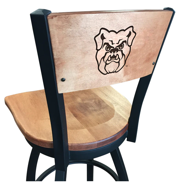Made for the ultimate sports fan, you will be proud to show where your loyalty lies with this impressive Officially Licensed stool from the Holland Bar Stool Co. Add a touch of class with this L038 Laser Engraved, swivel logo stool that has a medium finished wood back that doesn't just add comfort, but sophistication. The back is first laser engraved with your teams logo on state of the art equipment and then finished and sealed to ensure the best quality product possible. You won't find a higher quality logo stool on the market. The frame is made from commercial quality 16 gauge, 1 1/4 inch tube steel with solid mig welded joints to guarantee strength and durability. The powder coated finish resists chips and scratches and ensures a long-lasting, rich appearance. The cushion seats are of the highest quality as well, utilizing a breathable, commercial grade vinyl. At the heart of the cushion is 2 1/2 inches of highly-dense foam that provides maximum support and will not breakdown in a couple years. If you're going to finish your bar, game room, or man cave do it right- with a logo stool made by the Holland Bar Stool Co.