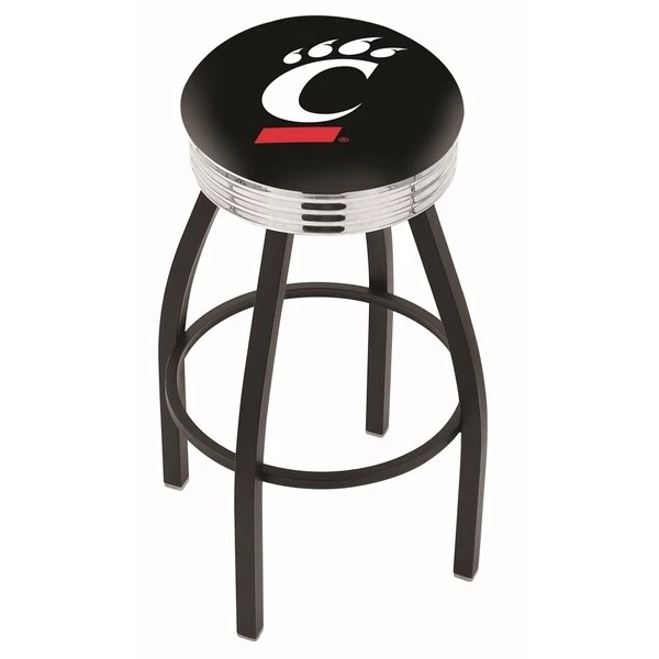 Made for the ultimate sports fan, you will be proud to show where your loyalty lies with this impressive Officially Licensed stool from the Holland Bar Stool Co. This classic L8B3C swivel stool features a single-ring black wrinkle base with a 2 1/2" thick cushion sitting on top of a 2.75" chrome ribbed ring that conceals the swivel for an exceptionally clean look. A state of the art print process is used in applying specially formulated UV vinyl ink in numerous stages to produce a sharp, crisp, clear image to ensure a perfect reproduction of the logo. You won't find a higher quality logo stool on the market. The frame is made from commercial quality 16 gauge, 1 1/4 inch tube steel with solid mig welded joints to guarantee strength and durability. The powder coated finish resists chips and scratches and ensures a long-lasting, rich appearance. The cushion seats are of the highest quality as well, utilizing a breathable, commercial grade vinyl. At the heart of the cushion is highly-dense foam that provides maximum support and will not breakdown in a couple years. If you're going to finish your bar, game room, or man cave do it right- with a logo stool made by the Holland Bar Stool Co.