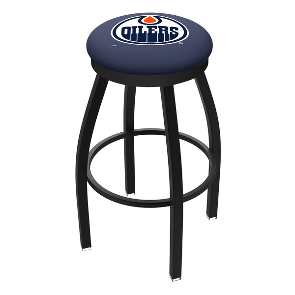 Made for the ultimate sports fan, you will be proud to show where your loyalty lies with this impressive Officially Licensed stool from the Holland Bar Stool Co. This contemporary L8B2B stool has a single-ring black wrinkle base with a 2 1/2" thick cushion sitting on top of a 2" black wrinkle ring that conceals the swivel for an exceptionally clean look. A state of the art print process is used in applying specially formulated UV vinyl ink in numerous stages to produce a sharp, crisp, clear image to ensure a perfect reproduction of the logo. You won't find a higher quality logo stool on the market. The frame is made from commercial quality 16 gauge, 1 1/4 inch tube steel with solid mig welded joints to guarantee strength and durability. The powder coated finish resists chips and scratches and ensures a long-lasting, rich appearance. The cushion seats are of the highest quality as well, utilizing a breathable, commercial grade vinyl. At the heart of the cushion is highly-dense foam that provides maximum support and will not breakdown in a couple years. If you're going to finish your bar, game room, or man cave do it right- with a logo stool made by the Holland Bar Stool Co.