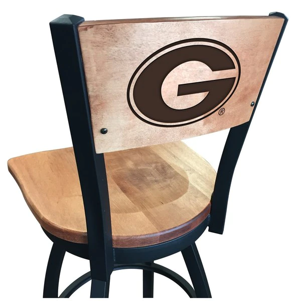 Made for the ultimate sports fan, you will be proud to show where your loyalty lies with this impressive Officially Licensed stool from the Holland Bar Stool Co. Add a touch of class with this L038 Laser Engraved, swivel logo stool that has a medium finished wood back that doesn't just add comfort, but sophistication. The back is first laser engraved with your teams logo on state of the art equipment and then finished and sealed to ensure the best quality product possible. You won't find a higher quality logo stool on the market. The frame is made from commercial quality 16 gauge, 1 1/4 inch tube steel with solid mig welded joints to guarantee strength and durability. The powder coated finish resists chips and scratches and ensures a long-lasting, rich appearance. The wood seat is 1 3/4 inch solid maple and is dished for amazing posterior comfort, making sitting for minutes or hours a pleasure. If you're going to finish your bar, game room, or man cave do it right- with a logo stool made by the Holland Bar Stool Co.