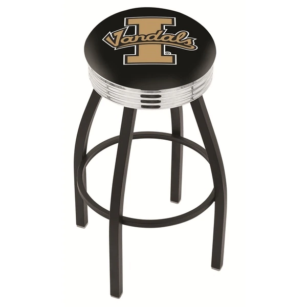 Made for the ultimate sports fan, you will be proud to show where your loyalty lies with this impressive Officially Licensed stool from the Holland Bar Stool Co. This classic L8B3C swivel stool features a single-ring black wrinkle base with a 2 1/2" thick cushion sitting on top of a 2.75" chrome ribbed ring that conceals the swivel for an exceptionally clean look. A state of the art print process is used in applying specially formulated UV vinyl ink in numerous stages to produce a sharp, crisp, clear image to ensure a perfect reproduction of the logo. You won't find a higher quality logo stool on the market. The frame is made from commercial quality 16 gauge, 1 1/4 inch tube steel with solid mig welded joints to guarantee strength and durability. The powder coated finish resists chips and scratches and ensures a long-lasting, rich appearance. The cushion seats are of the highest quality as well, utilizing a breathable, commercial grade vinyl. At the heart of the cushion is highly-dense foam that provides maximum support and will not breakdown in a couple years. If you're going to finish your bar, game room, or man cave do it right- with a logo stool made by the Holland Bar Stool Co.