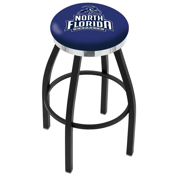 Made for the ultimate sports fan, you will be proud to show where your loyalty lies with this impressive Officially Licensed stool from the Holland Bar Stool Co. This contemporary L8B2C stool has a single-ring black wrinkle base with a 2 1/2" thick cushion sitting on top of a 2" chrome ring that conceals the swivel for an exceptionally clean look. A state of the art print process is used in applying specially formulated UV vinyl ink in numerous stages to produce a sharp, crisp, clear image to ensure a perfect reproduction of the logo. You won't find a higher quality logo stool on the market. The frame is made from commercial quality 16 gauge, 1 1/4 inch tube steel with solid mig welded joints to guarantee strength and durability. The powder coated finish resists chips and scratches and ensures a long-lasting, rich appearance. The cushion seats are of the highest quality as well, utilizing a breathable, commercial grade vinyl. At the heart of the cushion is highly-dense foam that provides maximum support and will not breakdown in a couple years. If you're going to finish your bar, game room, or man cave do it right- with a logo stool made by the Holland Bar Stool Co.