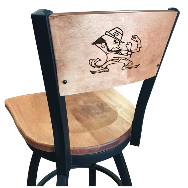 Made for the ultimate sports fan, you will be proud to show where your loyalty lies with this impressive Officially Licensed stool from the Holland Bar Stool Co. Add a touch of class with this L038 Laser Engraved, swivel logo stool that has a medium finished wood back that doesn't just add comfort, but sophistication. The back is first laser engraved with your teams logo on state of the art equipment and then finished and sealed to ensure the best quality product possible. You won't find a higher quality logo stool on the market. The frame is made from commercial quality 16 gauge, 1 1/4 inch tube steel with solid mig welded joints to guarantee strength and durability. The powder coated finish resists chips and scratches and ensures a long-lasting, rich appearance. The cushion seats are of the highest quality as well, utilizing a breathable, commercial grade vinyl. At the heart of the cushion is 2 1/2 inches of highly-dense foam that provides maximum support and will not breakdown in a couple years. If you're going to finish your bar, game room, or man cave do it right- with a logo stool made by the Holland Bar Stool Co.