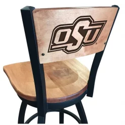 Made for the ultimate sports fan, you will be proud to show where your loyalty lies with this impressive Officially Licensed stool from the Holland Bar Stool Co. Add a touch of class with this L038 Laser Engraved, swivel logo stool that has a medium finished wood back that doesn't just add comfort, but sophistication. The back is first laser engraved with your teams logo on state of the art equipment and then finished and sealed to ensure the best quality product possible. You won't find a higher quality logo stool on the market. The frame is made from commercial quality 16 gauge, 1 1/4 inch tube steel with solid mig welded joints to guarantee strength and durability. The powder coated finish resists chips and scratches and ensures a long-lasting, rich appearance. The cushion seats are of the highest quality as well, utilizing a breathable, commercial grade vinyl. At the heart of the cushion is 2 1/2 inches of highly-dense foam that provides maximum support and will not breakdown in a couple years. If you're going to finish your bar, game room, or man cave do it right- with a logo stool made by the Holland Bar Stool Co.