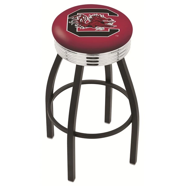 Made for the ultimate sports fan, you will be proud to show where your loyalty lies with this impressive Officially Licensed stool from the Holland Bar Stool Co. This classic L8B3C swivel stool features a single-ring black wrinkle base with a 2 1/2" thick cushion sitting on top of a 2.75" chrome ribbed ring that conceals the swivel for an exceptionally clean look. A state of the art print process is used in applying specially formulated UV vinyl ink in numerous stages to produce a sharp, crisp, clear image to ensure a perfect reproduction of the logo. You won't find a higher quality logo stool on the market. The frame is made from commercial quality 16 gauge, 1 1/4 inch tube steel with solid mig welded joints to guarantee strength and durability. The powder coated finish resists chips and scratches and ensures a long-lasting, rich appearance. The cushion seats are of the highest quality as well, utilizing a breathable, commercial grade vinyl. At the heart of the cushion is highly-dense foam that provides maximum support and will not breakdown in a couple years. If you're going to finish your bar, game room, or man cave do it right- with a logo stool made by the Holland Bar Stool Co.