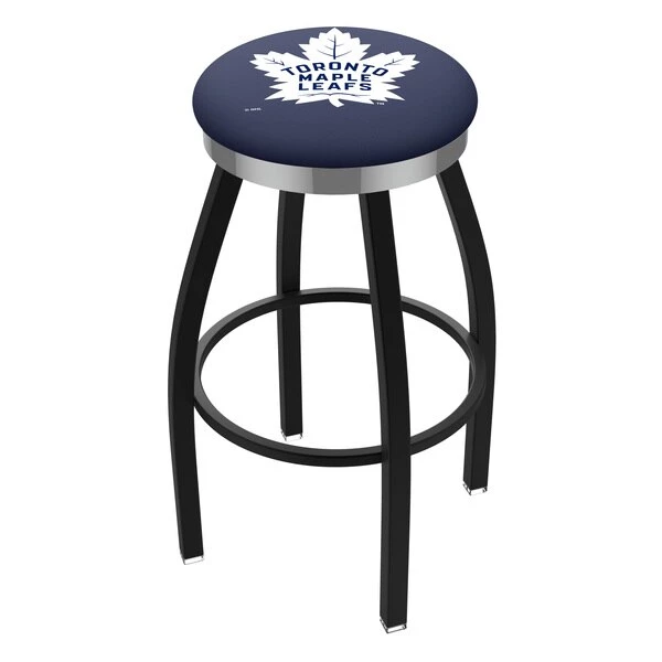 Made for the ultimate sports fan, you will be proud to show where your loyalty lies with this impressive Officially Licensed stool from the Holland Bar Stool Co. This contemporary L8B2C stool has a single-ring black wrinkle base with a 2 1/2" thick cushion sitting on top of a 2" chrome ring that conceals the swivel for an exceptionally clean look. A state of the art print process is used in applying specially formulated UV vinyl ink in numerous stages to produce a sharp, crisp, clear image to ensure a perfect reproduction of the logo. You won't find a higher quality logo stool on the market. The frame is made from commercial quality 16 gauge, 1 1/4 inch tube steel with solid mig welded joints to guarantee strength and durability. The powder coated finish resists chips and scratches and ensures a long-lasting, rich appearance. The cushion seats are of the highest quality as well, utilizing a breathable, commercial grade vinyl. At the heart of the cushion is highly-dense foam that provides maximum support and will not breakdown in a couple years. If you're going to finish your bar, game room, or man cave do it right- with a logo stool made by the Holland Bar Stool Co.