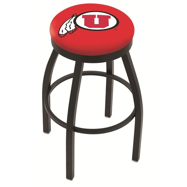 Made for the ultimate sports fan, you will be proud to show where your loyalty lies with this impressive Officially Licensed stool from the Holland Bar Stool Co. This contemporary L8B2B stool has a single-ring black wrinkle base with a 2 1/2" thick cushion sitting on top of a 2" black wrinkle ring that conceals the swivel for an exceptionally clean look. A state of the art print process is used in applying specially formulated UV vinyl ink in numerous stages to produce a sharp, crisp, clear image to ensure a perfect reproduction of the logo. You won't find a higher quality logo stool on the market. The frame is made from commercial quality 16 gauge, 1 1/4 inch tube steel with solid mig welded joints to guarantee strength and durability. The powder coated finish resists chips and scratches and ensures a long-lasting, rich appearance. The cushion seats are of the highest quality as well, utilizing a breathable, commercial grade vinyl. At the heart of the cushion is highly-dense foam that provides maximum support and will not breakdown in a couple years. If you're going to finish your bar, game room, or man cave do it right- with a logo stool made by the Holland Bar Stool Co.