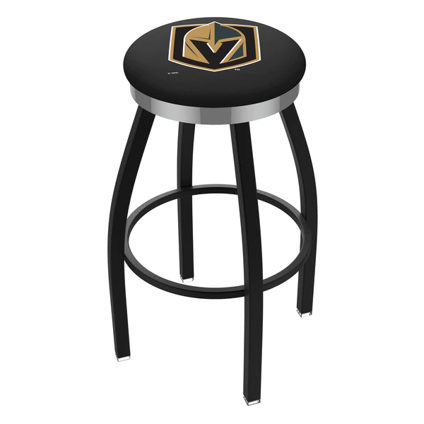 Made for the ultimate sports fan, you will be proud to show where your loyalty lies with this impressive Officially Licensed stool from the Holland Bar Stool Co. This contemporary L8B2C stool has a single-ring black wrinkle base with a 2 1/2" thick cushion sitting on top of a 2" chrome ring that conceals the swivel for an exceptionally clean look. A state of the art print process is used in applying specially formulated UV vinyl ink in numerous stages to produce a sharp, crisp, clear image to ensure a perfect reproduction of the logo. You won't find a higher quality logo stool on the market. The frame is made from commercial quality 16 gauge, 1 1/4 inch tube steel with solid mig welded joints to guarantee strength and durability. The powder coated finish resists chips and scratches and ensures a long-lasting, rich appearance. The cushion seats are of the highest quality as well, utilizing a breathable, commercial grade vinyl. At the heart of the cushion is highly-dense foam that provides maximum support and will not breakdown in a couple years. If you're going to finish your bar, game room, or man cave do it right- with a logo stool made by the Holland Bar Stool Co.