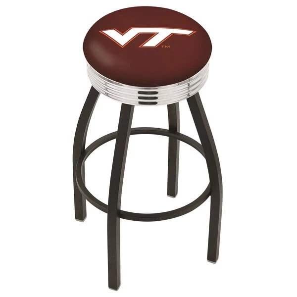 Made for the ultimate sports fan, you will be proud to show where your loyalty lies with this impressive Officially Licensed stool from the Holland Bar Stool Co. This classic L8B3C swivel stool features a single-ring black wrinkle base with a 2 1/2" thick cushion sitting on top of a 2.75" chrome ribbed ring that conceals the swivel for an exceptionally clean look. A state of the art print process is used in applying specially formulated UV vinyl ink in numerous stages to produce a sharp, crisp, clear image to ensure a perfect reproduction of the logo. You won't find a higher quality logo stool on the market. The frame is made from commercial quality 16 gauge, 1 1/4 inch tube steel with solid mig welded joints to guarantee strength and durability. The powder coated finish resists chips and scratches and ensures a long-lasting, rich appearance. The cushion seats are of the highest quality as well, utilizing a breathable, commercial grade vinyl. At the heart of the cushion is highly-dense foam that provides maximum support and will not breakdown in a couple years. If you're going to finish your bar, game room, or man cave do it right- with a logo stool made by the Holland Bar Stool Co.