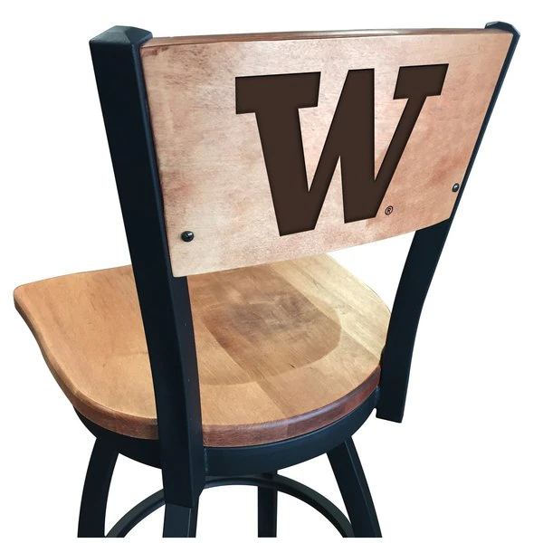Made for the ultimate sports fan, you will be proud to show where your loyalty lies with this impressive Officially Licensed stool from the Holland Bar Stool Co. Add a touch of class with this L038 Laser Engraved, swivel logo stool that has a medium finished wood back that doesn't just add comfort, but sophistication. The back is first laser engraved with your teams logo on state of the art equipment and then finished and sealed to ensure the best quality product possible. You won't find a higher quality logo stool on the market. The frame is made from commercial quality 16 gauge, 1 1/4 inch tube steel with solid mig welded joints to guarantee strength and durability. The powder coated finish resists chips and scratches and ensures a long-lasting, rich appearance. The wood seat is 1 3/4 inch solid maple and is dished for amazing posterior comfort, making sitting for minutes or hours a pleasure. If you're going to finish your bar, game room, or man cave do it right- with a logo stool made by the Holland Bar Stool Co.