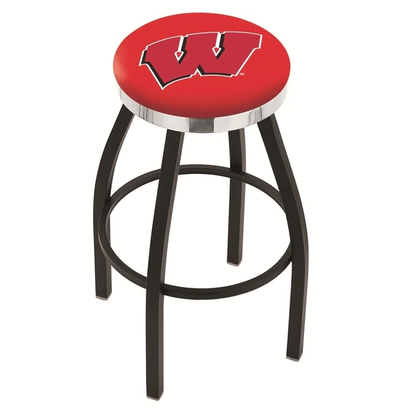 Made for the ultimate sports fan, you will be proud to show where your loyalty lies with this impressive Officially Licensed stool from the Holland Bar Stool Co. This contemporary L8B2C stool has a single-ring black wrinkle base with a 2 1/2" thick cushion sitting on top of a 2" chrome ring that conceals the swivel for an exceptionally clean look. A state of the art print process is used in applying specially formulated UV vinyl ink in numerous stages to produce a sharp, crisp, clear image to ensure a perfect reproduction of the logo. You won't find a higher quality logo stool on the market. The frame is made from commercial quality 16 gauge, 1 1/4 inch tube steel with solid mig welded joints to guarantee strength and durability. The powder coated finish resists chips and scratches and ensures a long-lasting, rich appearance. The cushion seats are of the highest quality as well, utilizing a breathable, commercial grade vinyl. At the heart of the cushion is highly-dense foam that provides maximum support and will not breakdown in a couple years. If you're going to finish your bar, game room, or man cave do it right- with a logo stool made by the Holland Bar Stool Co.