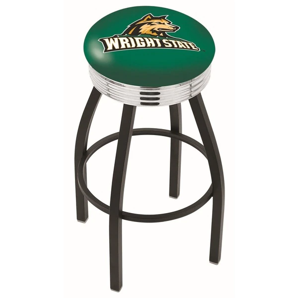 Made for the ultimate sports fan, you will be proud to show where your loyalty lies with this impressive Officially Licensed stool from the Holland Bar Stool Co. This classic L8B3C swivel stool features a single-ring black wrinkle base with a 2 1/2" thick cushion sitting on top of a 2.75" chrome ribbed ring that conceals the swivel for an exceptionally clean look. A state of the art print process is used in applying specially formulated UV vinyl ink in numerous stages to produce a sharp, crisp, clear image to ensure a perfect reproduction of the logo. You won't find a higher quality logo stool on the market. The frame is made from commercial quality 16 gauge, 1 1/4 inch tube steel with solid mig welded joints to guarantee strength and durability. The powder coated finish resists chips and scratches and ensures a long-lasting, rich appearance. The cushion seats are of the highest quality as well, utilizing a breathable, commercial grade vinyl. At the heart of the cushion is highly-dense foam that provides maximum support and will not breakdown in a couple years. If you're going to finish your bar, game room, or man cave do it right- with a logo stool made by the Holland Bar Stool Co.