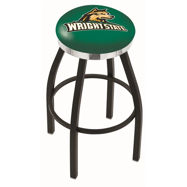 Made for the ultimate sports fan, you will be proud to show where your loyalty lies with this impressive Officially Licensed stool from the Holland Bar Stool Co. This contemporary L8B2C stool has a single-ring black wrinkle base with a 2 1/2" thick cushion sitting on top of a 2" chrome ring that conceals the swivel for an exceptionally clean look. A state of the art print process is used in applying specially formulated UV vinyl ink in numerous stages to produce a sharp, crisp, clear image to ensure a perfect reproduction of the logo. You won't find a higher quality logo stool on the market. The frame is made from commercial quality 16 gauge, 1 1/4 inch tube steel with solid mig welded joints to guarantee strength and durability. The powder coated finish resists chips and scratches and ensures a long-lasting, rich appearance. The cushion seats are of the highest quality as well, utilizing a breathable, commercial grade vinyl. At the heart of the cushion is highly-dense foam that provides maximum support and will not breakdown in a couple years. If you're going to finish your bar, game room, or man cave do it right- with a logo stool made by the Holland Bar Stool Co.