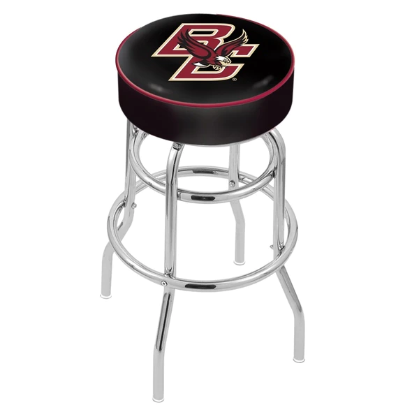 Made for the ultimate sports fan, you will be proud to show where your loyalty lies with this impressive Officially Licensed stool from the Holland Bar Stool Co. This L7C1 double ring swivel stool has a style that brings you back in time. A state of the art print process is used in applying specially formulated UV vinyl ink in numerous stages to produce a sharp, crisp, clear image to ensure a perfect reproduction of the logo. You won't find a higher quality logo stool on the market. The frame is made from commercial grade steel that is strong, durable, and triple chrome-plated to guarantee a long-lasting, rich finish capable of withstanding the abuse of your rowdiest of friends for years to come. The cushion seats are of the highest quality as well, utilizing a breathable, commercial grade vinyl. At the heart of the cushion is highly-dense foam that provides maximum support and will not breakdown in a couple years. If you're going to finish your bar, game room, or man cave do it right- with a logo stool made by the Holland Bar Stool Co.