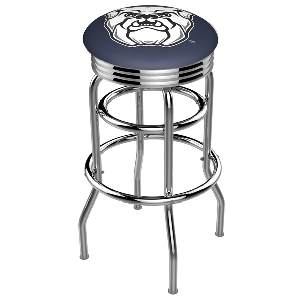 Made for the ultimate sports fan, you will be proud to show where your loyalty lies with this impressive Officially Licensed stool from the Holland Bar Stool Co. This L7C3C double ring swivel stool has a style that brings you back in time featuring a 2.75" chrome ribbed accent ring that conceals the swivel for a very clean look. A state of the art print process is used in applying specially formulated UV vinyl ink in numerous stages to produce a sharp, crisp, clear image to ensure a perfect reproduction of the logo. You won't find a higher quality logo stool on the market. The frame is made from commercial grade steel that is strong, durable, and triple chrome-plated to guarantee a long-lasting, rich finish capable of withstanding the abuse of your rowdiest of friends for years to come. The cushion seats are of the highest quality as well, utilizing a breathable, commercial grade vinyl. At the heart of the cushion is 2 1/2 inches of highly-dense foam that provides maximum support and will not breakdown in a couple years. If you're going to finish your bar, game room, or man cave do it right- with a logo stool made by the Holland Bar Stool Co.