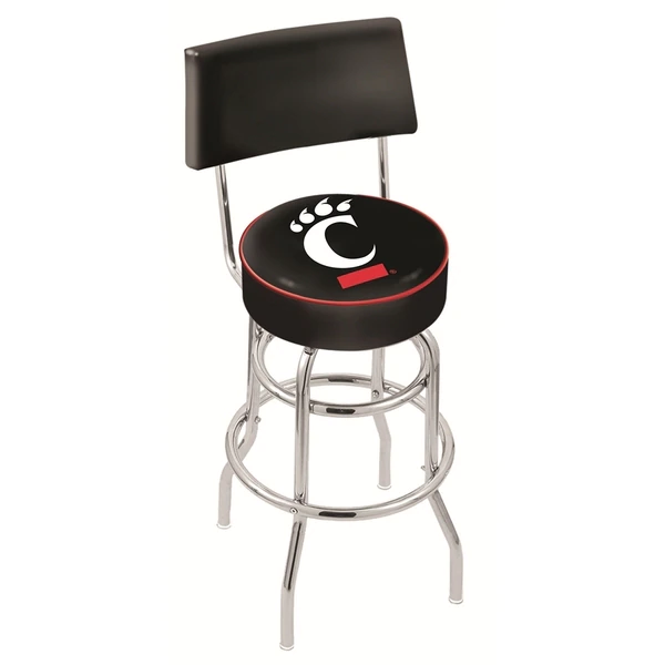 Made for the ultimate sports fan, you will be proud to show where your loyalty lies with this impressive Officially Licensed stool from the Holland Bar Stool Co. This retro L7C4 stool has a 5" cushion with a classic double-ring base and a cushioned back to achieve maximum comfort and support. A state of the art print process is used in applying specially formulated UV vinyl ink in numerous stages to produce a sharp, crisp, clear image to ensure a perfect reproduction of the logo. You won't find a higher quality logo stool on the market. The frame is made from commercial grade steel that is strong, durable, and triple chrome-plated to guarantee a long-lasting, rich finish capable of withstanding the abuse of your rowdiest of friends for years to come. The cushion seat and backs are of the highest quality as well, utilizing a breathable, commercial grade vinyl. At the heart of the cushion is highly-dense foam that provides maximum support and will not breakdown in a couple years. If you're going to finish your bar, game room, or man cave do it right- with a logo stool made by the Holland Bar Stool Co.