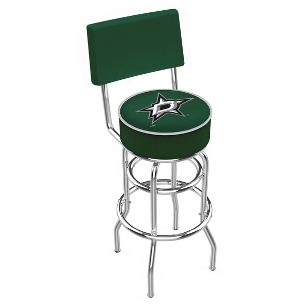 Made for the ultimate sports fan, you will be proud to show where your loyalty lies with this impressive Officially Licensed stool from the Holland Bar Stool Co. This retro L7C4 stool has a 5" cushion with a classic double-ring base and a cushioned back to achieve maximum comfort and support. A state of the art print process is used in applying specially formulated UV vinyl ink in numerous stages to produce a sharp, crisp, clear image to ensure a perfect reproduction of the logo. You won't find a higher quality logo stool on the market. The frame is made from commercial grade steel that is strong, durable, and triple chrome-plated to guarantee a long-lasting, rich finish capable of withstanding the abuse of your rowdiest of friends for years to come. The cushion seat and backs are of the highest quality as well, utilizing a breathable, commercial grade vinyl. At the heart of the cushion is highly-dense foam that provides maximum support and will not breakdown in a couple years. If you're going to finish your bar, game room, or man cave do it right- with a logo stool made by the Holland Bar Stool Co.