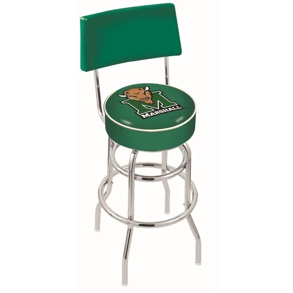 Made for the ultimate sports fan, you will be proud to show where your loyalty lies with this impressive Officially Licensed stool from the Holland Bar Stool Co. This retro L7C4 stool has a 5" cushion with a classic double-ring base and a cushioned back to achieve maximum comfort and support. A state of the art print process is used in applying specially formulated UV vinyl ink in numerous stages to produce a sharp, crisp, clear image to ensure a perfect reproduction of the logo. You won't find a higher quality logo stool on the market. The frame is made from commercial grade steel that is strong, durable, and triple chrome-plated to guarantee a long-lasting, rich finish capable of withstanding the abuse of your rowdiest of friends for years to come. The cushion seat and backs are of the highest quality as well, utilizing a breathable, commercial grade vinyl. At the heart of the cushion is highly-dense foam that provides maximum support and will not breakdown in a couple years. If you're going to finish your bar, game room, or man cave do it right- with a logo stool made by the Holland Bar Stool Co.