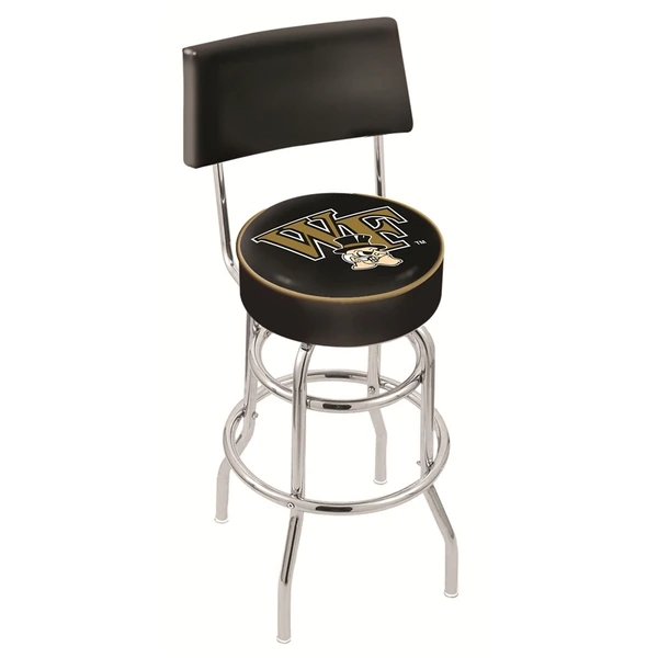 Made for the ultimate sports fan, you will be proud to show where your loyalty lies with this impressive Officially Licensed stool from the Holland Bar Stool Co. This retro L7C4 stool has a 5" cushion with a classic double-ring base and a cushioned back to achieve maximum comfort and support. A state of the art print process is used in applying specially formulated UV vinyl ink in numerous stages to produce a sharp, crisp, clear image to ensure a perfect reproduction of the logo. You won't find a higher quality logo stool on the market. The frame is made from commercial grade steel that is strong, durable, and triple chrome-plated to guarantee a long-lasting, rich finish capable of withstanding the abuse of your rowdiest of friends for years to come. The cushion seat and backs are of the highest quality as well, utilizing a breathable, commercial grade vinyl. At the heart of the cushion is highly-dense foam that provides maximum support and will not breakdown in a couple years. If you're going to finish your bar, game room, or man cave do it right- with a logo stool made by the Holland Bar Stool Co.
