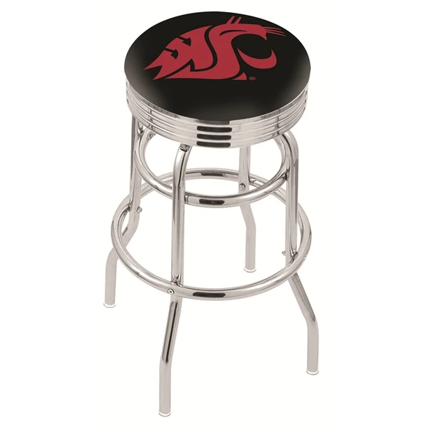 Made for the ultimate sports fan, you will be proud to show where your loyalty lies with this impressive Officially Licensed stool from the Holland Bar Stool Co. This L7C3C double ring swivel stool has a style that brings you back in time featuring a 2.75" chrome ribbed accent ring that conceals the swivel for a very clean look. A state of the art print process is used in applying specially formulated UV vinyl ink in numerous stages to produce a sharp, crisp, clear image to ensure a perfect reproduction of the logo. You won't find a higher quality logo stool on the market. The frame is made from commercial grade steel that is strong, durable, and triple chrome-plated to guarantee a long-lasting, rich finish capable of withstanding the abuse of your rowdiest of friends for years to come. The cushion seats are of the highest quality as well, utilizing a breathable, commercial grade vinyl. At the heart of the cushion is 2 1/2 inches of highly-dense foam that provides maximum support and will not breakdown in a couple years. If you're going to finish your bar, game room, or man cave do it right- with a logo stool made by the Holland Bar Stool Co.