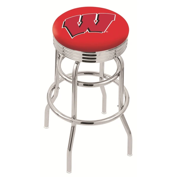 Made for the ultimate sports fan, you will be proud to show where your loyalty lies with this impressive Officially Licensed stool from the Holland Bar Stool Co. This L7C3C double ring swivel stool has a style that brings you back in time featuring a 2.75" chrome ribbed accent ring that conceals the swivel for a very clean look. A state of the art print process is used in applying specially formulated UV vinyl ink in numerous stages to produce a sharp, crisp, clear image to ensure a perfect reproduction of the logo. You won't find a higher quality logo stool on the market. The frame is made from commercial grade steel that is strong, durable, and triple chrome-plated to guarantee a long-lasting, rich finish capable of withstanding the abuse of your rowdiest of friends for years to come. The cushion seats are of the highest quality as well, utilizing a breathable, commercial grade vinyl. At the heart of the cushion is 2 1/2 inches of highly-dense foam that provides maximum support and will not breakdown in a couple years. If you're going to finish your bar, game room, or man cave do it right- with a logo stool made by the Holland Bar Stool Co.