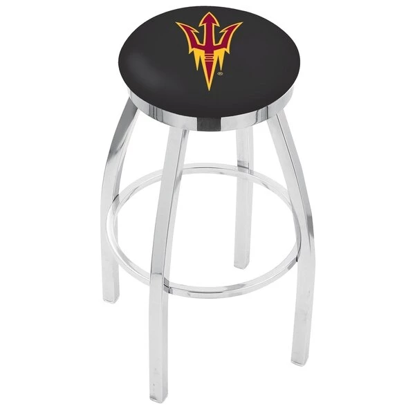 Made for the ultimate sports fan, you will be proud to show where your loyalty lies with this impressive Officially Licensed stool from the Holland Bar Stool Co. This contemporary L8C2C swivel stool has a single-ring chrome base with a 2 1/2" thick cushion sitting on top of a 2" chrome ring that conceals the swivel for an exceptionally clean look. A state of the art print process is used in applying specially formulated UV vinyl ink in numerous stages to produce a sharp, crisp, clear image to ensure a perfect reproduction of the logo. You won't find a higher quality logo stool on the market. The frame is made from commercial quality 16 gauge, 1 1/4 inch tube steel with solid mig welded joints to guarantee strength and durability. The triple chrome plated finish resists chips and scratches and ensures a long-lasting, rich appearance. The cushion seats are of the highest quality as well, utilizing a breathable, commercial grade vinyl. At the heart of the cushion is highly-dense foam that provides maximum support and will not breakdown in a couple years. If you're going to finish your bar, game room, or man cave do it right- with a logo stool made by the Holland Bar Stool Co.