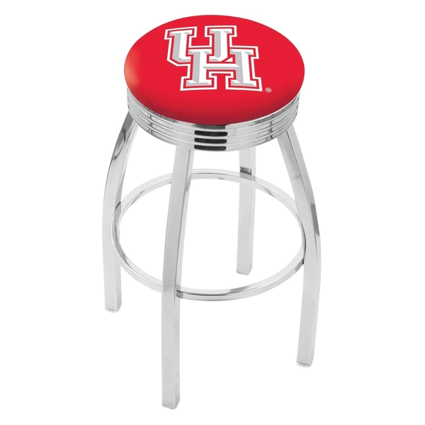 Made for the ultimate sports fan, you will be proud to show where your loyalty lies with this impressive Officially Licensed stool from the Holland Bar Stool Co. This classic L8C3C stool features a single-ring chrome base with a 2 1/2" thick cushion sitting on top of a 2.75" chrome ribbed ring that conceals the swivel for an exceptionally clean look. A state of the art print process is used in applying specially formulated UV vinyl ink in numerous stages to produce a sharp, crisp, clear image to ensure a perfect reproduction of the logo. You won't find a higher quality logo stool on the market. The frame is made from commercial quality 16 gauge, 1 1/4 inch tube steel with solid mig welded joints to guarantee strength and durability. The triple chrome plated finish resists chips and scratches and ensures a long-lasting, rich appearance. The cushion seats are of the highest quality as well, utilizing a breathable, commercial grade vinyl. At the heart of the cushion is highly-dense foam that provides maximum support and will not breakdown in a couple years. If you're going to finish your bar, game room, or man cave do it right- with a logo stool made by the Holland Bar Stool Co.