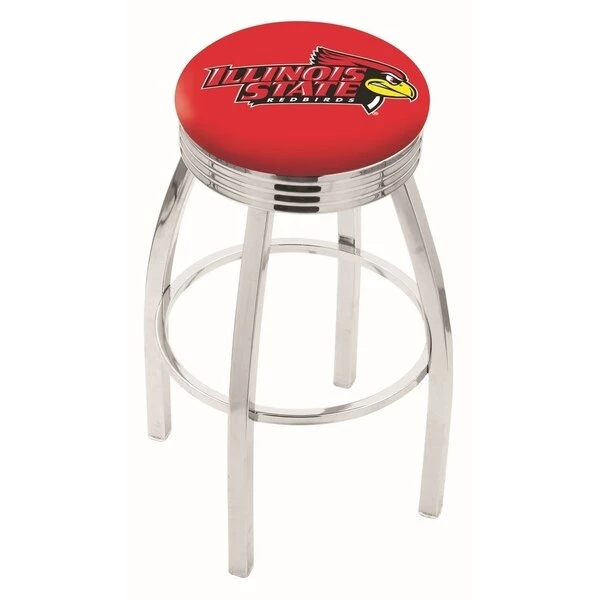 Made for the ultimate sports fan, you will be proud to show where your loyalty lies with this impressive Officially Licensed stool from the Holland Bar Stool Co. This classic L8C3C stool features a single-ring chrome base with a 2 1/2" thick cushion sitting on top of a 2.75" chrome ribbed ring that conceals the swivel for an exceptionally clean look. A state of the art print process is used in applying specially formulated UV vinyl ink in numerous stages to produce a sharp, crisp, clear image to ensure a perfect reproduction of the logo. You won't find a higher quality logo stool on the market. The frame is made from commercial quality 16 gauge, 1 1/4 inch tube steel with solid mig welded joints to guarantee strength and durability. The triple chrome plated finish resists chips and scratches and ensures a long-lasting, rich appearance. The cushion seats are of the highest quality as well, utilizing a breathable, commercial grade vinyl. At the heart of the cushion is highly-dense foam that provides maximum support and will not breakdown in a couple years. If you're going to finish your bar, game room, or man cave do it right- with a logo stool made by the Holland Bar Stool Co.