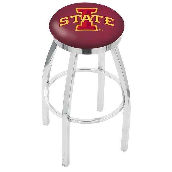 Made for the ultimate sports fan, you will be proud to show where your loyalty lies with this impressive Officially Licensed stool from the Holland Bar Stool Co. This contemporary L8C2C swivel stool has a single-ring chrome base with a 2 1/2" thick cushion sitting on top of a 2" chrome ring that conceals the swivel for an exceptionally clean look. A state of the art print process is used in applying specially formulated UV vinyl ink in numerous stages to produce a sharp, crisp, clear image to ensure a perfect reproduction of the logo. You won't find a higher quality logo stool on the market. The frame is made from commercial quality 16 gauge, 1 1/4 inch tube steel with solid mig welded joints to guarantee strength and durability. The triple chrome plated finish resists chips and scratches and ensures a long-lasting, rich appearance. The cushion seats are of the highest quality as well, utilizing a breathable, commercial grade vinyl. At the heart of the cushion is highly-dense foam that provides maximum support and will not breakdown in a couple years. If you're going to finish your bar, game room, or man cave do it right- with a logo stool made by the Holland Bar Stool Co.