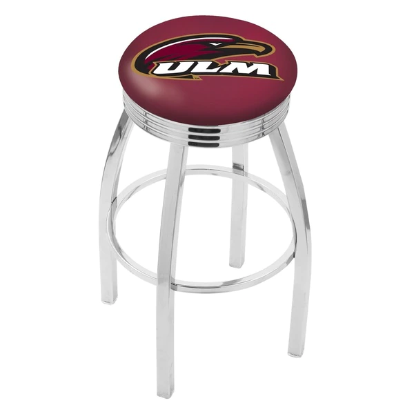 Made for the ultimate sports fan, you will be proud to show where your loyalty lies with this impressive Officially Licensed stool from the Holland Bar Stool Co. This classic L8C3C stool features a single-ring chrome base with a 2 1/2" thick cushion sitting on top of a 2.75" chrome ribbed ring that conceals the swivel for an exceptionally clean look. A state of the art print process is used in applying specially formulated UV vinyl ink in numerous stages to produce a sharp, crisp, clear image to ensure a perfect reproduction of the logo. You won't find a higher quality logo stool on the market. The frame is made from commercial quality 16 gauge, 1 1/4 inch tube steel with solid mig welded joints to guarantee strength and durability. The triple chrome plated finish resists chips and scratches and ensures a long-lasting, rich appearance. The cushion seats are of the highest quality as well, utilizing a breathable, commercial grade vinyl. At the heart of the cushion is highly-dense foam that provides maximum support and will not breakdown in a couple years. If you're going to finish your bar, game room, or man cave do it right- with a logo stool made by the Holland Bar Stool Co.