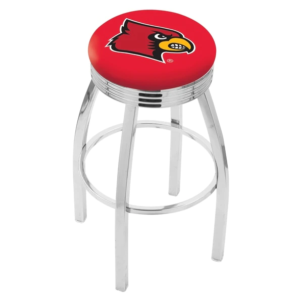 Made for the ultimate sports fan, you will be proud to show where your loyalty lies with this impressive Officially Licensed stool from the Holland Bar Stool Co. This classic L8C3C stool features a single-ring chrome base with a 2 1/2" thick cushion sitting on top of a 2.75" chrome ribbed ring that conceals the swivel for an exceptionally clean look. A state of the art print process is used in applying specially formulated UV vinyl ink in numerous stages to produce a sharp, crisp, clear image to ensure a perfect reproduction of the logo. You won't find a higher quality logo stool on the market. The frame is made from commercial quality 16 gauge, 1 1/4 inch tube steel with solid mig welded joints to guarantee strength and durability. The triple chrome plated finish resists chips and scratches and ensures a long-lasting, rich appearance. The cushion seats are of the highest quality as well, utilizing a breathable, commercial grade vinyl. At the heart of the cushion is highly-dense foam that provides maximum support and will not breakdown in a couple years. If you're going to finish your bar, game room, or man cave do it right- with a logo stool made by the Holland Bar Stool Co.
