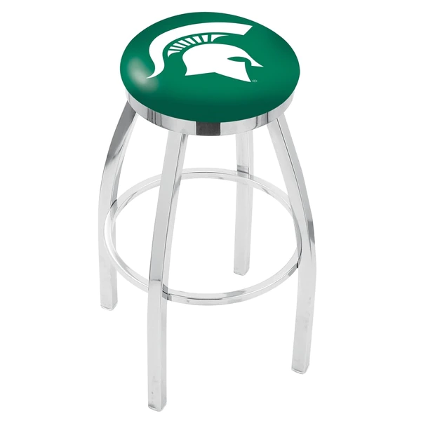 Made for the ultimate sports fan, you will be proud to show where your loyalty lies with this impressive Officially Licensed stool from the Holland Bar Stool Co. This contemporary L8C2C swivel stool has a single-ring chrome base with a 2 1/2" thick cushion sitting on top of a 2" chrome ring that conceals the swivel for an exceptionally clean look. A state of the art print process is used in applying specially formulated UV vinyl ink in numerous stages to produce a sharp, crisp, clear image to ensure a perfect reproduction of the logo. You won't find a higher quality logo stool on the market. The frame is made from commercial quality 16 gauge, 1 1/4 inch tube steel with solid mig welded joints to guarantee strength and durability. The triple chrome plated finish resists chips and scratches and ensures a long-lasting, rich appearance. The cushion seats are of the highest quality as well, utilizing a breathable, commercial grade vinyl. At the heart of the cushion is highly-dense foam that provides maximum support and will not breakdown in a couple years. If you're going to finish your bar, game room, or man cave do it right- with a logo stool made by the Holland Bar Stool Co.