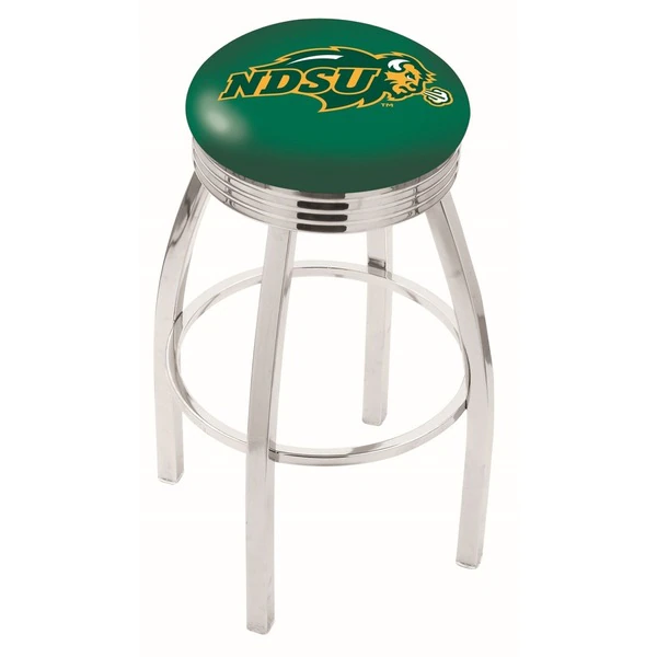 Made for the ultimate sports fan, you will be proud to show where your loyalty lies with this impressive Officially Licensed stool from the Holland Bar Stool Co. This classic L8C3C stool features a single-ring chrome base with a 2 1/2" thick cushion sitting on top of a 2.75" chrome ribbed ring that conceals the swivel for an exceptionally clean look. A state of the art print process is used in applying specially formulated UV vinyl ink in numerous stages to produce a sharp, crisp, clear image to ensure a perfect reproduction of the logo. You won't find a higher quality logo stool on the market. The frame is made from commercial quality 16 gauge, 1 1/4 inch tube steel with solid mig welded joints to guarantee strength and durability. The triple chrome plated finish resists chips and scratches and ensures a long-lasting, rich appearance. The cushion seats are of the highest quality as well, utilizing a breathable, commercial grade vinyl. At the heart of the cushion is highly-dense foam that provides maximum support and will not breakdown in a couple years. If you're going to finish your bar, game room, or man cave do it right- with a logo stool made by the Holland Bar Stool Co.
