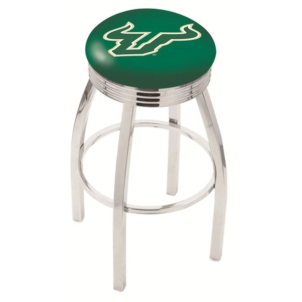Made for the ultimate sports fan, you will be proud to show where your loyalty lies with this impressive Officially Licensed stool from the Holland Bar Stool Co. This classic L8C3C stool features a single-ring chrome base with a 2 1/2" thick cushion sitting on top of a 2.75" chrome ribbed ring that conceals the swivel for an exceptionally clean look. A state of the art print process is used in applying specially formulated UV vinyl ink in numerous stages to produce a sharp, crisp, clear image to ensure a perfect reproduction of the logo. You won't find a higher quality logo stool on the market. The frame is made from commercial quality 16 gauge, 1 1/4 inch tube steel with solid mig welded joints to guarantee strength and durability. The triple chrome plated finish resists chips and scratches and ensures a long-lasting, rich appearance. The cushion seats are of the highest quality as well, utilizing a breathable, commercial grade vinyl. At the heart of the cushion is highly-dense foam that provides maximum support and will not breakdown in a couple years. If you're going to finish your bar, game room, or man cave do it right- with a logo stool made by the Holland Bar Stool Co.