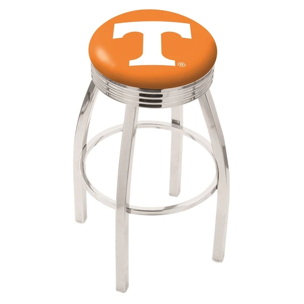 Made for the ultimate sports fan, you will be proud to show where your loyalty lies with this impressive Officially Licensed stool from the Holland Bar Stool Co. This classic L8C3C stool features a single-ring chrome base with a 2 1/2" thick cushion sitting on top of a 2.75" chrome ribbed ring that conceals the swivel for an exceptionally clean look. A state of the art print process is used in applying specially formulated UV vinyl ink in numerous stages to produce a sharp, crisp, clear image to ensure a perfect reproduction of the logo. You won't find a higher quality logo stool on the market. The frame is made from commercial quality 16 gauge, 1 1/4 inch tube steel with solid mig welded joints to guarantee strength and durability. The triple chrome plated finish resists chips and scratches and ensures a long-lasting, rich appearance. The cushion seats are of the highest quality as well, utilizing a breathable, commercial grade vinyl. At the heart of the cushion is highly-dense foam that provides maximum support and will not breakdown in a couple years. If you're going to finish your bar, game room, or man cave do it right- with a logo stool made by the Holland Bar Stool Co.