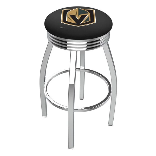 Made for the ultimate sports fan, you will be proud to show where your loyalty lies with this impressive Officially Licensed stool from the Holland Bar Stool Co. This classic L8C3C stool features a single-ring chrome base with a 2 1/2" thick cushion sitting on top of a 2.75" chrome ribbed ring that conceals the swivel for an exceptionally clean look. A state of the art print process is used in applying specially formulated UV vinyl ink in numerous stages to produce a sharp, crisp, clear image to ensure a perfect reproduction of the logo. You won't find a higher quality logo stool on the market. The frame is made from commercial quality 16 gauge, 1 1/4 inch tube steel with solid mig welded joints to guarantee strength and durability. The triple chrome plated finish resists chips and scratches and ensures a long-lasting, rich appearance. The cushion seats are of the highest quality as well, utilizing a breathable, commercial grade vinyl. At the heart of the cushion is highly-dense foam that provides maximum support and will not breakdown in a couple years. If you're going to finish your bar, game room, or man cave do it right- with a logo stool made by the Holland Bar Stool Co.