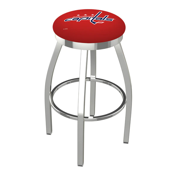 Made for the ultimate sports fan, you will be proud to show where your loyalty lies with this impressive Officially Licensed stool from the Holland Bar Stool Co. This contemporary L8C2C swivel stool has a single-ring chrome base with a 2 1/2" thick cushion sitting on top of a 2" chrome ring that conceals the swivel for an exceptionally clean look. A state of the art print process is used in applying specially formulated UV vinyl ink in numerous stages to produce a sharp, crisp, clear image to ensure a perfect reproduction of the logo. You won't find a higher quality logo stool on the market. The frame is made from commercial quality 16 gauge, 1 1/4 inch tube steel with solid mig welded joints to guarantee strength and durability. The triple chrome plated finish resists chips and scratches and ensures a long-lasting, rich appearance. The cushion seats are of the highest quality as well, utilizing a breathable, commercial grade vinyl. At the heart of the cushion is highly-dense foam that provides maximum support and will not breakdown in a couple years. If you're going to finish your bar, game room, or man cave do it right- with a logo stool made by the Holland Bar Stool Co.