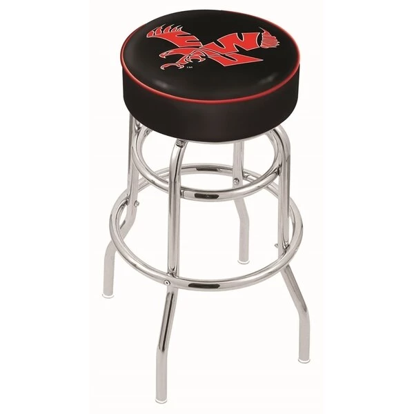 Made for the ultimate sports fan, you will be proud to show where your loyalty lies with this impressive Officially Licensed stool from the Holland Bar Stool Co. This L7C1 double ring swivel stool has a style that brings you back in time. A state of the art print process is used in applying specially formulated UV vinyl ink in numerous stages to produce a sharp, crisp, clear image to ensure a perfect reproduction of the logo. You won't find a higher quality logo stool on the market. The frame is made from commercial grade steel that is strong, durable, and triple chrome-plated to guarantee a long-lasting, rich finish capable of withstanding the abuse of your rowdiest of friends for years to come. The cushion seats are of the highest quality as well, utilizing a breathable, commercial grade vinyl. At the heart of the cushion is highly-dense foam that provides maximum support and will not breakdown in a couple years. If you're going to finish your bar, game room, or man cave do it right- with a logo stool made by the Holland Bar Stool Co.
