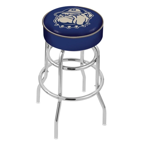 Made for the ultimate sports fan, you will be proud to show where your loyalty lies with this impressive Officially Licensed stool from the Holland Bar Stool Co. This L7C1 double ring swivel stool has a style that brings you back in time. A state of the art print process is used in applying specially formulated UV vinyl ink in numerous stages to produce a sharp, crisp, clear image to ensure a perfect reproduction of the logo. You won't find a higher quality logo stool on the market. The frame is made from commercial grade steel that is strong, durable, and triple chrome-plated to guarantee a long-lasting, rich finish capable of withstanding the abuse of your rowdiest of friends for years to come. The cushion seats are of the highest quality as well, utilizing a breathable, commercial grade vinyl. At the heart of the cushion is highly-dense foam that provides maximum support and will not breakdown in a couple years. If you're going to finish your bar, game room, or man cave do it right- with a logo stool made by the Holland Bar Stool Co.