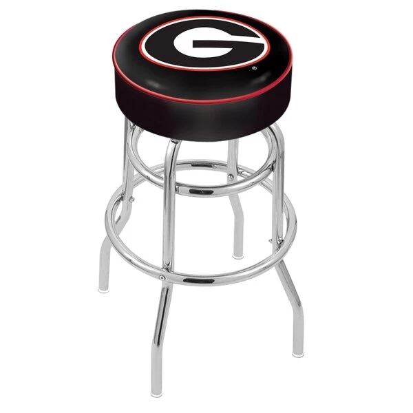 Made for the ultimate sports fan, you will be proud to show where your loyalty lies with this impressive Officially Licensed stool from the Holland Bar Stool Co. This L7C1 double ring swivel stool has a style that brings you back in time. A state of the art print process is used in applying specially formulated UV vinyl ink in numerous stages to produce a sharp, crisp, clear image to ensure a perfect reproduction of the logo. You won't find a higher quality logo stool on the market. The frame is made from commercial grade steel that is strong, durable, and triple chrome-plated to guarantee a long-lasting, rich finish capable of withstanding the abuse of your rowdiest of friends for years to come. The cushion seats are of the highest quality as well, utilizing a breathable, commercial grade vinyl. At the heart of the cushion is highly-dense foam that provides maximum support and will not breakdown in a couple years. If you're going to finish your bar, game room, or man cave do it right- with a logo stool made by the Holland Bar Stool Co.