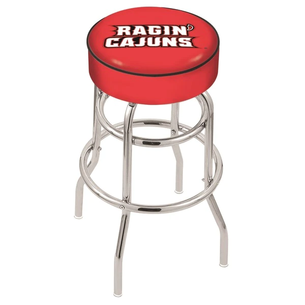 Made for the ultimate sports fan, you will be proud to show where your loyalty lies with this impressive Officially Licensed stool from the Holland Bar Stool Co. This L7C1 double ring swivel stool has a style that brings you back in time. A state of the art print process is used in applying specially formulated UV vinyl ink in numerous stages to produce a sharp, crisp, clear image to ensure a perfect reproduction of the logo. You won't find a higher quality logo stool on the market. The frame is made from commercial grade steel that is strong, durable, and triple chrome-plated to guarantee a long-lasting, rich finish capable of withstanding the abuse of your rowdiest of friends for years to come. The cushion seats are of the highest quality as well, utilizing a breathable, commercial grade vinyl. At the heart of the cushion is highly-dense foam that provides maximum support and will not breakdown in a couple years. If you're going to finish your bar, game room, or man cave do it right- with a logo stool made by the Holland Bar Stool Co.