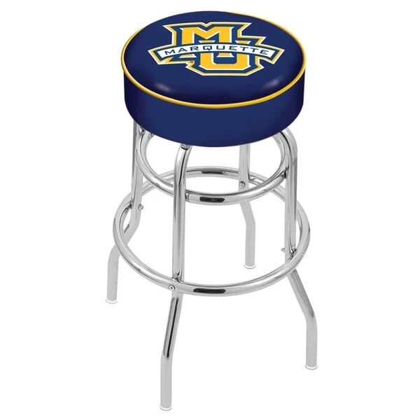 Made for the ultimate sports fan, you will be proud to show where your loyalty lies with this impressive Officially Licensed stool from the Holland Bar Stool Co. This L7C1 double ring swivel stool has a style that brings you back in time. A state of the art print process is used in applying specially formulated UV vinyl ink in numerous stages to produce a sharp, crisp, clear image to ensure a perfect reproduction of the logo. You won't find a higher quality logo stool on the market. The frame is made from commercial grade steel that is strong, durable, and triple chrome-plated to guarantee a long-lasting, rich finish capable of withstanding the abuse of your rowdiest of friends for years to come. The cushion seats are of the highest quality as well, utilizing a breathable, commercial grade vinyl. At the heart of the cushion is highly-dense foam that provides maximum support and will not breakdown in a couple years. If you're going to finish your bar, game room, or man cave do it right- with a logo stool made by the Holland Bar Stool Co.