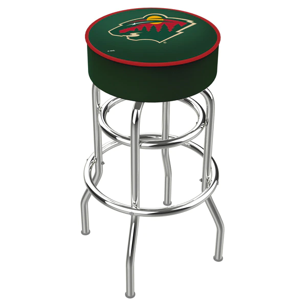 Made for the ultimate sports fan, you will be proud to show where your loyalty lies with this impressive Officially Licensed stool from the Holland Bar Stool Co. This L7C1 double ring swivel stool has a style that brings you back in time. A state of the art print process is used in applying specially formulated UV vinyl ink in numerous stages to produce a sharp, crisp, clear image to ensure a perfect reproduction of the logo. You won't find a higher quality logo stool on the market. The frame is made from commercial grade steel that is strong, durable, and triple chrome-plated to guarantee a long-lasting, rich finish capable of withstanding the abuse of your rowdiest of friends for years to come. The cushion seats are of the highest quality as well, utilizing a breathable, commercial grade vinyl. At the heart of the cushion is highly-dense foam that provides maximum support and will not breakdown in a couple years. If you're going to finish your bar, game room, or man cave do it right- with a logo stool made by the Holland Bar Stool Co.