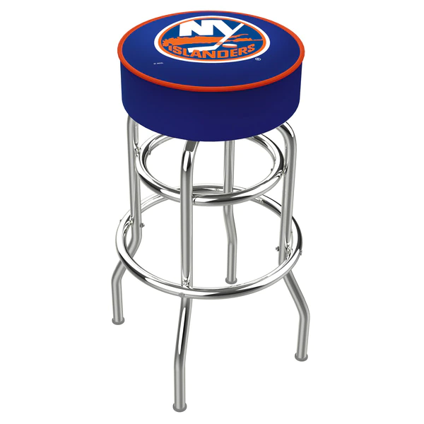Made for the ultimate sports fan, you will be proud to show where your loyalty lies with this impressive Officially Licensed stool from the Holland Bar Stool Co. This L7C1 double ring swivel stool has a style that brings you back in time. A state of the art print process is used in applying specially formulated UV vinyl ink in numerous stages to produce a sharp, crisp, clear image to ensure a perfect reproduction of the logo. You won't find a higher quality logo stool on the market. The frame is made from commercial grade steel that is strong, durable, and triple chrome-plated to guarantee a long-lasting, rich finish capable of withstanding the abuse of your rowdiest of friends for years to come. The cushion seats are of the highest quality as well, utilizing a breathable, commercial grade vinyl. At the heart of the cushion is highly-dense foam that provides maximum support and will not breakdown in a couple years. If you're going to finish your bar, game room, or man cave do it right- with a logo stool made by the Holland Bar Stool Co.