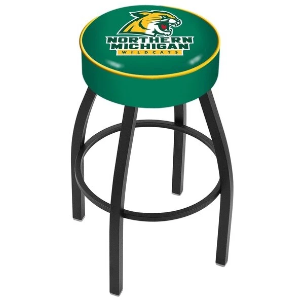 Made for the ultimate sports fan, you will be proud to show where your loyalty lies with this impressive Officially Licensed stool from the Holland Bar Stool Co. This contemporary L8B1 stool features a single-ring black wrinkle base with a 5" scooped cushion that conceals the swivel for an exceptionally clean look. A state of the art print process is used in applying specially formulated UV vinyl ink in numerous stages to produce a sharp, crisp, clear image to ensure a perfect reproduction of the logo. You won't find a higher quality logo stool on the market. The frame is made from commercial quality 16 gauge, 1 1/4 inch tube steel with solid mig welded joints to guarantee strength and durability. The powder coated finish resists chips and scratches and ensures a long-lasting, rich appearance. The cushion seats are of the highest quality as well, utilizing a breathable, commercial grade vinyl. At the heart of the cushion is highly-dense foam that provides maximum support and will not breakdown in a couple years. If you're going to finish your bar, game room, or man cave do it right- with a logo stool made by the Holland Bar Stool Co.
