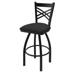 Customize your very own bar stool with the help of the Holland Bar Stool Co. This Black Wrinkle Catalina swivel bar stool has a contemporary design and provides superb back support for exceptional comfort. The frame is made from commercial quality 16 gauge, 1 1/4 inch tube steel with solid mig welded joints to guarantee strength and durability. The powder coated finish resists chips and scratches and ensures a long-lasting, rich appearance. The wood seats are 1 1/4 inch solid hardwood (oak or maple) and are dished for amazing posterior comfort, making sitting for minutes or hours a pleasure. The cushion seats are of the highest quality as well, utilizing a breathable, commercial grade vinyl or fabric. At the heart of the cushion is 2 1/2 inches of highly-dense foam that provides maximum support and will not breakdown in a couple years. You won't find a higher quality stool on the market. If you are going to finish your bar or dining area – do it right, with a stool from the Holland Bar Stool Co.