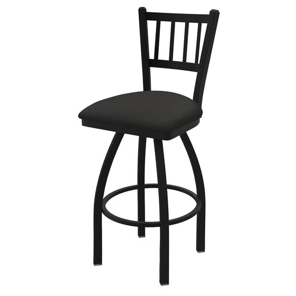 Customize your very own bar stool with the help of the Holland Bar Stool Co. This Black Wrinkle Contessa swivel bar stool has a contemporary design and provides superb back support for exceptional comfort. The frame is made from commercial quality 16 gauge, 1 1/4 inch tube steel with solid mig welded joints to guarantee strength and durability. The powder coated finish resists chips and scratches and ensures a long-lasting, rich appearance. The wood seats are 1 1/4 inch solid hardwood (oak or maple) and are dished for amazing posterior comfort, making sitting for minutes or hours a pleasure. The cushion seats are of the highest quality as well, utilizing a breathable, commercial grade vinyl or fabric. At the heart of the cushion is 2 1/2 inches of highly-dense foam that provides maximum support and will not breakdown in a couple years. You won't find a higher quality stool on the market. If you are going to finish your bar or dining area – do it right, with a stool from the Holland Bar Stool Co.