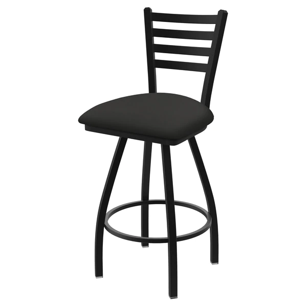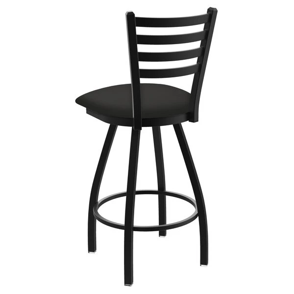 This Black Wrinkle XL Jackie swivel bar stool has a contemporary design and provides superb back support for exceptional comfort. The XL stool line from Holland Bar Stool features a larger base providing superior stability and the seat is 2" wider and 1" deeper than standard seats.The frame is made from commercial quality 16 gauge, 1 1/4 inch tube steel with solid mig welded joints to guarantee strength and durability. The powder coated finish resists chips and scratches and ensures a long-lasting, rich appearance. The wood seats are 1 1/4 inch solid hardwood (oak or maple) and are dished for amazing posterior comfort, making sitting for minutes or hours a pleasure. The cushion seats are of the highest quality as well, utilizing a breathable, commercial grade vinyl or fabric. At the heart of the cushion is 2 1/2 inches of highly-dense foam that provides maximum support and will not breakdown in a couple years. You won't find a higher quality stool on the market. If you are going to finish your bar or dining area – do it right, with a stool from the Holland Bar Stool Co.