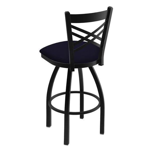 Customize your very own bar stool with the help of the Holland Bar Stool Co. This Black Wrinkle Catalina swivel bar stool has a contemporary design and provides superb back support for exceptional comfort. The frame is made from commercial quality 16 gauge, 1 1/4 inch tube steel with solid mig welded joints to guarantee strength and durability. The powder coated finish resists chips and scratches and ensures a long-lasting, rich appearance. The wood seats are 1 1/4 inch solid hardwood (oak or maple) and are dished for amazing posterior comfort, making sitting for minutes or hours a pleasure. The cushion seats are of the highest quality as well, utilizing a breathable, commercial grade vinyl or fabric. At the heart of the cushion is 2 1/2 inches of highly-dense foam that provides maximum support and will not breakdown in a couple years. You won't find a higher quality stool on the market. If you are going to finish your bar or dining area – do it right, with a stool from the Holland Bar Stool Co.
